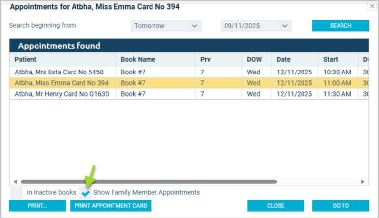 When viewing a patient’s next appointment, you can now see upcoming bookings for the entire family. This makes it easier for reception teams to coordinate appointments and helps families manage their visits more efficiently.